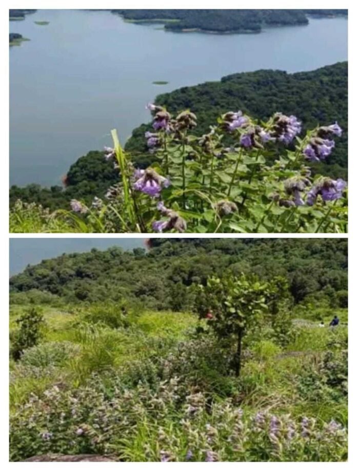 ഇടുക്കി ജലാശയത്തിൻ്റെ പശ്ചാത്തലത്തില് പൂവിട്ട് നില്ക്കുന്ന നീലവസന്തം ആരേയും ആകർഷിക്കുന്നതാണ്. വീശിയടിക്കുന്ന കാറ്റില് തലയാട്ടി നില്ക്കുന്ന നീലപൂക്കള്, മഞ്ഞ് പെയ്യുന്ന കല്യാണത്തണ്ട് മലനിരകളെ കൂടുതല് മനോഹരിയാക്കുന്നു. ഒരു മാസം കൂടി കഴിഞ്ഞാല് മലനിരകള്ക്ക് മുഴുവൻ നീല നിറമാകും. ഓണക്കാലത്ത് വിനോദ സഞ്ചാരികളെ വരവേല്ക്കാൻ കാത്തിരിക്കുകയാണ് കല്യാണത്തണ്ടിന്റെ നീലവസന്തം.