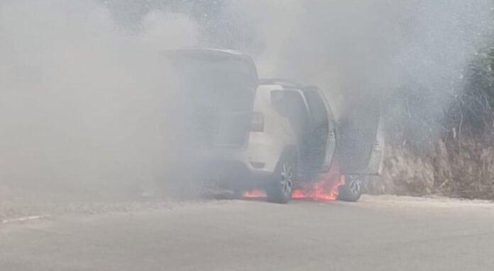 ഇടുക്കിയിൽ ഓടിക്കൊണ്ടിരുന്ന വാഹനത്തിന് തീപിടിച്ചു. മൂന്നാർ ഉദുമൽപ്പെട്ട അന്തർ സംസ്ഥാന പാതയിൽ പെരിവരയ്ക്കും കന്നിമലക്കും ഇടയിലാണ് സഞ്ചാരികൾ സഞ്ചരിച്ച കാറിനാണ് തീ പിടിച്ചത്. മറയൂർ സന്ദർശനത്തിനുശേഷം മൂന്നാറിലേക്ക് വരികയായിരുന്ന സഞ്ചാരികളുടെ വാഹനത്തിനാണ് തീ പിടിച്ചത്. കന്നിമലയ്ക്ക് സമീപം വെച്ച് വാഹനത്തിൽ പുക ഉയരുന്നത് കണ്ട സഞ്ചാരികൾ പെട്ടെന്ന് തന്നെ വാഹനത്തിൽ നിന്നും പുറത്തിറങ്ങുകയായിരുന്നു. വാഹനത്തിൽ നാല് പേരാണ് ഉണ്ടായിരുന്നത്. ഉടൻതന്നെ വാഹനത്തിൽ വലിയ രീതിയിൽ ആളിപ്പടരുകയായിരുന്നു. സഞ്ചാരികൾ പെട്ടെന്ന് തന്നെ വാഹനത്തിൽ നിന്ന് ഇറങ്ങിയത് കാരണം വൻ അപകടം ഒഴിവായി. മൂന്നാറിലെ അഗ്നി രക്ഷാ സേനയെത്തിയാണ് തീയണച്ചത്. മൂന്നാർ പൊലീസ് സ്ഥലത്തെത്തി മേൽ നടപടികൾ സ്വീകരിച്ചു.