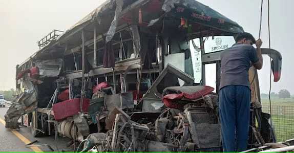 ഉന്നാവ്: ഉത്തർപ്രദേശിലെ ഉന്നാവിനുസമീപം ഡബിൾ ഡെക്കർ ബസും ടാങ്കർ ലോറിയും കൂട്ടിയിടിച്ചുണ്ടായ അപകടത്തിൽ 18 പേർ മരിച്ചു. മൂന്ന് സ്ത്രീകളും ഒരു കുട്ടിയും ഉൾപ്പടെയുള്ള 18 പേരുടെ മരണം സ്ഥിരീകരിച്ചു. ബസ് പാല് കയറ്റി വരികയായിരുന്ന കണ്ടെയ്നര് ട്രക്കുമായി കൂട്ടിയിടിക്കുകയായിരുന്നു. ഇന്ന്പുലർച്ചെ ലക്നൗ– ആഗ്ര എക്സ്പ്രസ് പാതയിലായിരുന്നു അപകടം.