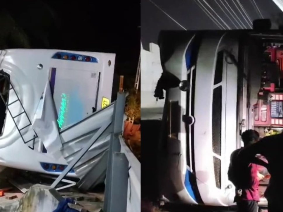 തിരുവനന്തപുരം: കല്ലമ്പലം നാവായിക്കുളം യെദുക്കാട് ടൂറിസ്റ്റ് ബസ് മറിഞ്ഞു 17വിദ്യാർത്ഥികൾക്ക് പരിക്ക്. ഇതിലൊരാളുടെ പരിക്ക് ഗുരുതരമാണ്. പരിക്കേറ്റവരെ പാരിരിപ്പള്ളി മെഡിക്കൽ കോളേജിലും കൊല്ലത്തെ സ്വകാര്യ ആശുപത്രിയിലും പ്രവേശിപ്പിച്ചു. തൃശ്ശൂർ കൊടകര എംബിഎ കോളേജിൽ നിന്നും പഠനയാത്രയ്ക്കായി എത്തിയ വിദ്യാർത്ഥികൾ സഞ്ചരിച്ച ബസ് ആണ് അപകടത്തിൽപ്പെട്ടത്. 40 ഓളം വിദ്യാർത്ഥികളും അധ്യാപകരുമായിരുന്നു ബസ്സിൽ ഉണ്ടായിരുന്നത്. ദേശീയപാതയിൽ ബൈപ്പാസിന്റെ പണി നടക്കുന്നതിനാൽ സർവീസ് റോഡ് വഴി വന്ന ബസിൻ്റെ ചക്രങ്ങൾ മണ്ണിൽ പുതഞ്ഞു ബസ് ചരിഞ്ഞാണ് അപകടമുണ്ടായത്