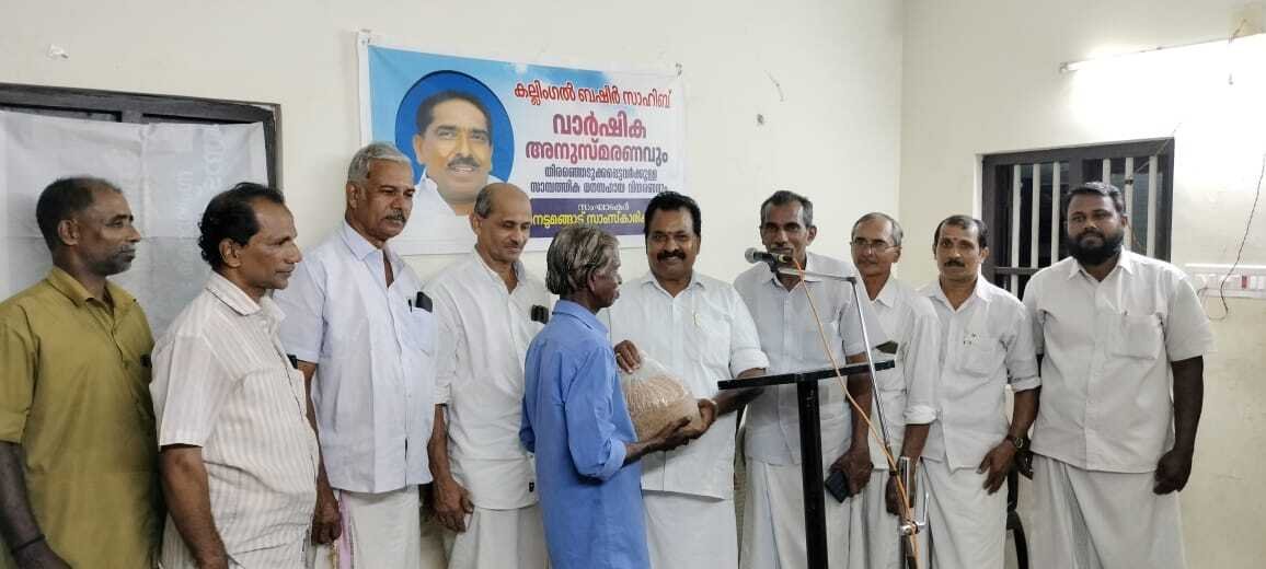 നെടുമങ്ങാട്: നെടുമങ്ങാട് സാംസ്കാരിക വേദിയുടെ ആഭിമുഖ്യത്തില് നെടുമങ്ങാട്ടെ മുന്കാല സാമൂഹിക പ്രവര്ത്തകനും, കല്ലിംഗല് ബജാജ് ഉടമയുമായ കല്ലിംഗല് ബഷീര് ഹാജിയുടെ പതിനാലാമത് അനുസ്മരണയോഗവും, ഭക്ഷ്യ കിറ്റുകളുടെ വിതരണവും സംഘടിപ്പിച്ചു. യോഗം സാംസ്കാരിക വേദി ചെയര്മാന് നെടുമങ്ങാട് ശ്രീകുമാര് ഉദ്ഘാടനം ചെയ്തു. വൈസ് ചെയര്മാന് പുലിപ്പാറ യൂസഫ് അധ്യക്ഷനായി. ചടങ്ങില് നെടുമങ്ങാട് എം.നസീര്, വെമ്പില് സജി, മൂഴിയില് മുഹമ്മദ് ഷിബു, വഞ്ചുവം ഷറഫ്, തോട്ടുമുക്ക് പ്രസന്നന്, ഇല്യാസ് പത്താംകല്ല്, രാജു.ആര്, സത്യന് തുടങ്ങിയവര് സംസാരിച്ചു.