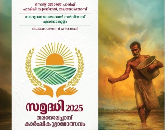 തലയോലപ്പറമ്പ് സെന്റ് ജോർജ് പള്ളി ഫാമിലി യൂണിയന്റെ നേതൃത്വത്തിൽ സഹൃദയ വെൽഫെയർ സർവീസസ് എറണാകുളത്തിന്റെയും തലയോലപ്പറമ്പ് പൗരാവലിയുടെയും സഹകരണത്തോടെ സമൃദ്ധി 2025 കാർഷിക ഗ്രാമോത്സവം നടത്തുക. മുപ്പതിനു രാവിലെ 8ന് കാർഷിക മേള ആരംഭിക്കും.