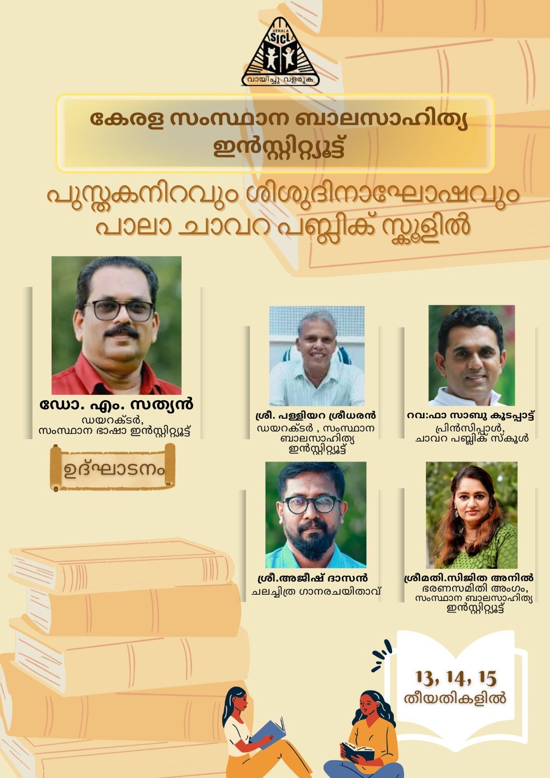 കേരള സംസ്ഥാന ബാലസാഹിത്യ ഇൻസ്റ്റിറ്റ്യൂട്ട് പുസ്തക നിറവും ശിശുദിനാഘോഷവും നാളെ പാലാ ചാവറ പബ്ലിക് സ്കൂളിൽ