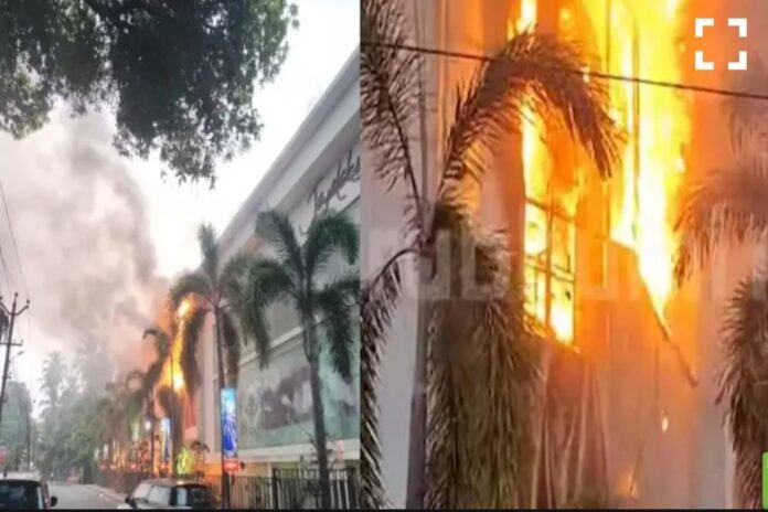 കോഴിക്കോട്: കോഴിക്കോട് പാളയത്ത് വൻ തീപിടിത്തം. കോഴിക്കോട് പാളയത്ത് റെയിൽവെ സ്റ്റേഷന് സമീപമുള്ള ജയലക്ഷ്മി ടെകസ്റ്റൈൽസിലാണ് തീപിടിത്തമുണ്ടായത്. അൽപ്പസമയം മുമ്പാണ് തീപിടിത്തമുണ്ടായത്. ഫയര്ഫോഴ്സെത്തി തീ അണയ്ക്കാനുള്ള ശ്രമം തുടരുകയാണ്. ടെകസ്റ്റൈൽസിന്റെ രണ്ടും മൂന്നു നിലകളിൽ തീ ആളിപ്പടരുകയാണ്. മീഞ്ചന്ത, ബീച്ച്, വെള്ളിമാടുകുന്ന് എന്നീ ഫയര് സ്റ്റേഷനുകളിൽ നിന്നുള്ള ഫയര്ഫോഴ്സാണ് സ്ഥലത്തെത്തിയിട്ടുള്ളത്. തീപടര്ന്ന ഉടനെ ജീവനക്കാരെയും ഉപഭോക്താക്കളെയും പുറത്തിറക്കുകയായിരുന്നു. കെട്ടിടത്തിന്റെ പിൻഭാഗത്ത് നിന്നാണ് തീപടര്ന്നത്. തുടര്ന്ന് മുകളിലത്തെ നിലയിലേക്ക് ആളിപടരുകയായിരുന്നു. കൂടുതൽ സ്ഥലത്തേക്ക് തീ ആളിപടരുകയാണ്. കെട്ടിടത്തിനുള്ളിൽ ആളുകള് ഇല്ലെന്നാണ് പ്രാഥമിക നിഗമനം. പതിനായിരം ചതുരശ്ര അടിയിലുള്ള കെട്ടിടത്തിന്റെ മൂന്നു നിലകളിലായാണ് തീപിടിച്ചത്. വെഡ്ഡിങ് സെക്ഷനിലെ വസ്ത്രങ്ങള് സൂക്ഷിച്ച ഗോഡൗണിന്റെ ഭാഗത്ത് നിന്നുമാണ് തീ ആദ്യം ആളിപടര്ന്നത്. തീപിടിച്ചതിനെതുടര്ന്ന് ടെകസ്റ്റൈൽസിലെ ഗ്ലാസുകള് പൊട്ടിത്തെറിക്കുന്നത് രക്ഷാപ്രവര്ത്തനത്തിന് വെല്ലുവിളിയായി മാറുന്നുണ്ട്