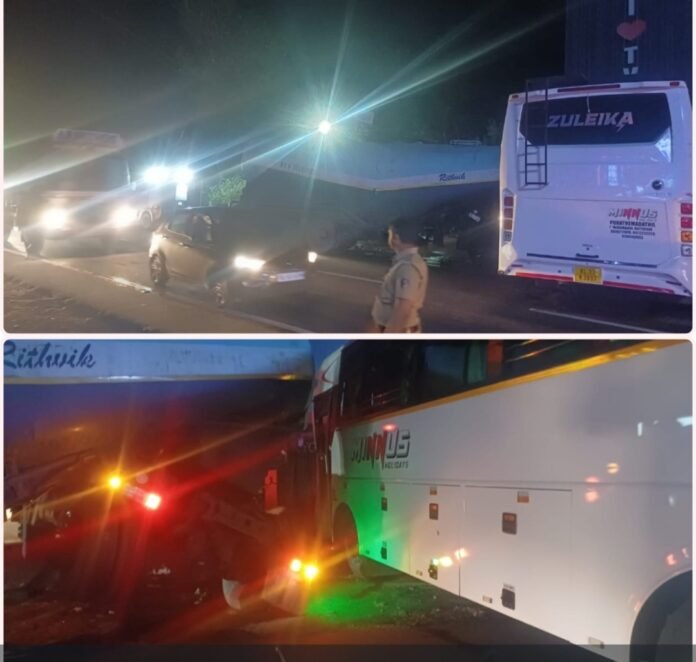 തിരുവല്ല: മുത്തൂരിൽ എംസി റോഡിൽ ടൂറിസ്റ്റ് ബസും കോൺക്രീറ്റ് മിക്സർ ട്രക്കും കൂട്ടിയിടിച്ച് വൻ അപകടം. അപകടത്തിൽ ബസിലുണ്ടായിരുന്ന മുപ്പതോളം പേർക്ക് പരിക്കേറ്റു. ഇന്ന് പുലർച്ചയോടെയായിരുന്നു സംഭവം. ടൂറിസ്റ്റ് ബസും മിക്സർ ട്രക്കും നേർക്കുനേർ ഇടിക്കുകയായിരുന്നു എന്നാണ് പ്രാഥമിക വിവരം.