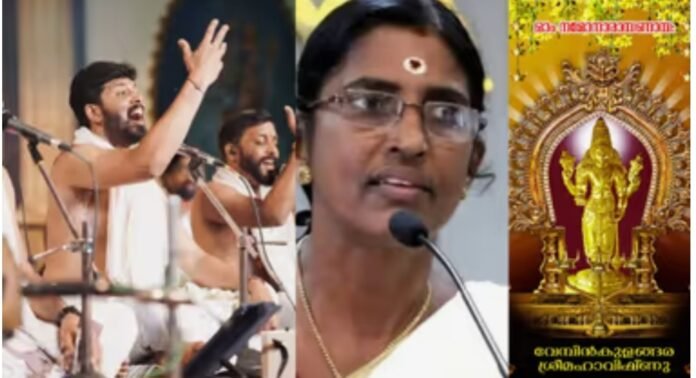 കേരളത്തിൽ വളരെ ആരാധകരുള്ള ഭക്തി സംഘമാണ് നന്ദഗോവിന്ദം ഭജൻസ്. നന്ദഗോവിന്ദം ടീം അടുത്തിടെ കോട്ടയം വേമ്പിൻകുളങ്ങര ശ്രീ മഹാവിഷ്ണു ക്ഷേത്രത്തിൽ ഭജന അവതരിപ്പിക്കുന്നതിനിടെയാണ് സംഘം ക്രിസ്തീയ ഭക്തിഗാനം ആലപിച്ച. ഇത് സമൂഹമാധ്യമങ്ങളിൽ വൈറലായിരുന്നു. ‘ഈ പരദേവനഹോ’ എന്ന ഗാനമാണ് നന്ദഗോവിന്ദം ഭജൻസ് ഭക്തിസാന്ദ്രതയോടെ ആലപിച്ചത്. എന്നാൽ ക്ഷേത്രോത്സവത്തിനിടെ ക്രിസ്തീയ ഭക്തിഗാനം ആലപിച്ച ഭജന സംഘത്തിനെതിരെ രൂക്ഷവിമർശനവുമായി ഹിന്ദു ഐക്യവേദി മുഖ്യരക്ഷാധികാരി കെപി ശശികല രംഗത്ത് വന്നു. ഇതിന് പിന്നാലെ സമൂഹ മാധ്യമങ്ങളിലടക്കം ഉയർന്ന വിമശനങ്ങൾക്ക് ക്ഷേത്ര പരിപാടിക്ക് ക്രിസ്തീയ ഗാനം പാടിയെന്ന വിമർശനങ്ങൾക്ക് വേമ്പിൻകുളങ്ങര ശ്രീ മഹാവിഷ്ണു ക്ഷേത്രം നട്ടാശ്ശേരി പുനരുദ്ധാരണ കമ്മിറ്റി കൺവീനർ തന്നെ മറുപടി നൽകി.ഇരിക്കുന്ന കൊമ്പ് എത്ര ബലമുളളതാണെങ്കിലും സ്വയം മുറിച്ചാൽ അത് വീഴുമെന്ന് അവർ പറഞ്ഞു. ചിക്കൻ മസാല നല്ലതാണ്, പക്ഷേ അത് പായസത്തിലിടരുതെന്നും ഇതൊരു വീട്ടമ്മയുടെ ഉപദേശമാണെന്നുമായിരുന്നു ഹിന്ദു ഐക്യവേദി മുഖ്യരക്ഷാധികാരി കെപി ശശികല പരിഹസിച്ചത്. വിമർശനങ്ങൾക്കെതിരെ നന്ദഗോവിന്ദം ഭജൻ ടീമും പ്രതികരണവുമായി രംഗത്ത് വന്നിരുന്നു. പരിപാടിയുടെ ഭാഗമായി, സംഘാടകരുടെയും പ്രേക്ഷകരുടെയും അനുമതിയോടെ, ഈ സംരംഭത്തിന് പിന്തുണ നല്കിയവര്ക്കുള്ള ചെറിയ നന്ദി രേഖപ്പെടുത്തലായി ഞങ്ങള് ഒരു ഗാനം ആലപിച്ചുവെന്ന് ക്രിസ്ത്യൻ ഭക്തിഗാനം പാടിയ സംഭവത്തിൽ നന്ദഗോവിന്ദം ഭജൻ ടീം വിശദീകരിച്ചു. നന്ദഗോവിന്ദം എപ്പോഴും ഭക്തി, ഐക്യം, സംഗീതത്തിലൂടെ ആളുകള് ഒന്നാകുന്ന ആത്മാവ് എന്നിവയ്ക്കായി നിലകൊണ്ടതാണ്, അത് മാറിയിട്ടില്ലെന്നും അവർ ഫേസ്ബുക്കിൽ കുറിച്ചു