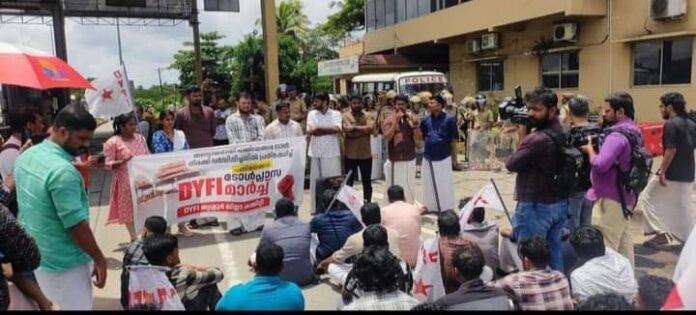 ഡിവൈഎഫ്ഐ ജില്ലാ സെക്രട്ടറി വി.പി. ശരത്പ്രസാദ് ധർണ്ണ ഉദ്ഘാടനം ചെയ്തു. ജില്ലാ പ്രസിഡന്റ് ആര്‍.എല്‍. ശ്രീലാല്‍ അധ്യക്ഷനായി. സംസ്ഥാന കമ്മിറ്റി അംഗങ്ങളായ കെ.എസ്. റോസല്‍രാജ്, സുകന്യ ബൈജു, ജില്ലാ ട്രഷറര്‍ കെ.എസ്. സെന്തില്‍കുമാര്‍, ഒല്ലൂര്‍ ബ്ലോക്ക് സെക്രട്ടറി മിഥുന്‍ കൃഷ്ണന്‍ എന്നിവര്‍ സംസാരിച്ചു. ചാലക്കുടി ഡിവൈഎസ്പിയുടെ നേതൃത്വത്തിൽ വൻ പോലീസ് സംഘവും സ്ഥലത്തെത്തിയിരുന്നു.