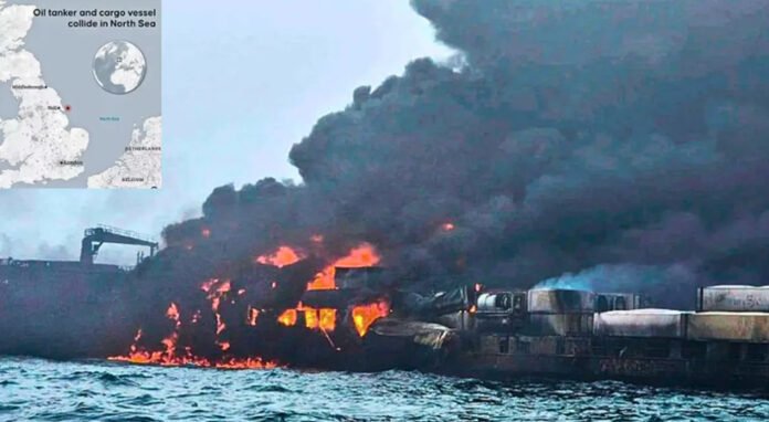 ഈസ്റ്റ് യോർക്ക്ഷയർ തീരത്ത് ഒരു ടാങ്കറും ചരക്ക് കപ്പലും കൂട്ടിയിടിച്ചതായുള്ള റിപ്പോർട്ടുകളെത്തുടർന്ന് രക്ഷാപ്രവർത്തനങ്ങൾ ഏകോപിപ്പിക്കുകയാണെന്ന് യുകെ കോസ്റ്റ് ഗാർഡ് വക്താവ് പറഞ്ഞു. വടക്കൻ കടലിലെ സംഭവസ്ഥലത്തേക്ക് നിരവധി ലൈഫ് ബോട്ടുകളും ഒരു കോസ്റ്റ് ഗാർഡ് റെസ്ക്യൂ ഹെലികോപ്റ്ററും, ഒരു കോസ്റ്റ് ഗാർഡ് വിമാനവും സമീപത്തുള്ള അഗ്നിശമന ശേഷിയുള്ള കപ്പലുകളും അയച്ചതായി ബ്രിട്ടന്റെ മാരിടൈം ആൻഡ് കോസ്റ്റ് ഗാർഡ് ഏജൻസി അറിയിച്ചു.
