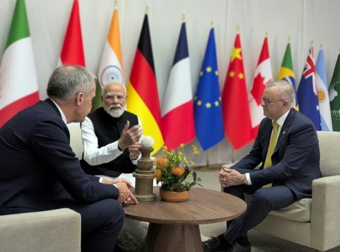 വനിതകള് നയിക്കുന്ന വികസനത്തിന് ഊന്നല് നല്കണം എന്ന ഇന്ത്യയുടെ നിലപാടും സംയുക്ത പ്രഖ്യാപനത്തില് ഇടംപിടിച്ചിട്ടുണ്ട്. ഫ്രഞ്ച് പ്രസിഡന്റ് ഇമ്മാനുവല് മാക്രോണുമായി നരേന്ദ്ര മോദി കൂടിക്കാഴ്ച നടത്തി. ഇന്ത്യ -കാനഡ- ഓസ്ട്രേലിയ സാങ്കേതി സഹകരണ കൂട്ടായ്മയും ഉച്ചകോടിക്കിടെ പ്രഖ്യാപിച്ചു. ഓസ്ട്രേലിയന് പ്രധാനമന്ത്രി ആന്റണി ആല്ബനീസ്, കനേഡിയന് പ്രധാനമന്ത്രി മാര്ക്ക് കാര്ണി എന്നിവരുമായി നടത്തിയ ചര്ച്ചയ്ക്കു ശേഷമാണ് മോദി ഇക്കാര്യം പ്രഖ്യാപിച്ചത്. ജി 20 നേതാക്കളുടെ അത്താഴ വിരുന്നിലും മോദി പങ്കെടുത്തു