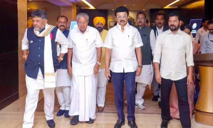 പുനർനിർണയത്തിനെതിരെ നിയമസഭയിൽ പ്രമേയം പാസാക്കുമെന്ന് തെലങ്കാന മുഖ്യമന്ത്രി രേവന്ത് റെഡ്ഡി അറിയിച്ചു. ജനസംഖ്യാടിസ്ഥാനത്തിൽ പുനർനിർണയം നടത്തരുതെന്ന് പഞ്ചാബ് മുഖ്യമന്ത്രി ഭഗവന്ത്സിങ്മാൻ ആവശ്യപ്പെട്ടു. ശിരോമണി അകാലിദൾ, മുസ്ലിം ലീഗ്, ബിജു ജനതാദൾ, ആം ആദ്മി, ജനസേനാ ഭാരതീയ രാഷ്ട്രീയ സമിതി ഉൾപ്പെടെ എട്ട് സംസ്ഥാനങ്ങളിൽനിന്നുള്ള 23 രാഷ്ട്രീയകക്ഷികളുടെ പ്രതിനിധികളാണ് യോഗത്തിൽ പങ്കെടുത്തത്. പിന്തുണക്കുന്നതായി അറിയിച്ചെങ്കിലും പ്രതിനിധിയെ അയക്കാൻ പശ്ചിമ ബംഗാൾ മുഖ്യമന്ത്രിയുമായ മമത ബാനർജി തയാറായില്ല. മുൻ ഒഡിഷ മുഖ്യമന്ത്രി നവീൻ പട്നായിക് വിഡിയോ കോൺഫറൻസിങ് മുഖേന സംസാരിച്ചു. കെ.സുധാകരൻ എം.പി, ബിനോയ്വിശ്വം, എൻ.കെ. പ്രേമചന്ദ്രൻ എം.പി, പി.എം.എ. സലാം ഉൾപ്പെടെയുള്ള നേതാക്കൾ പങ്കെടുത്തു. അടുത്തഘട്ട യോഗം ഹൈദരാബാദിൽ നടക്കുമെന്ന് സ്റ്റാലിൻ അറിയിച്ചു.