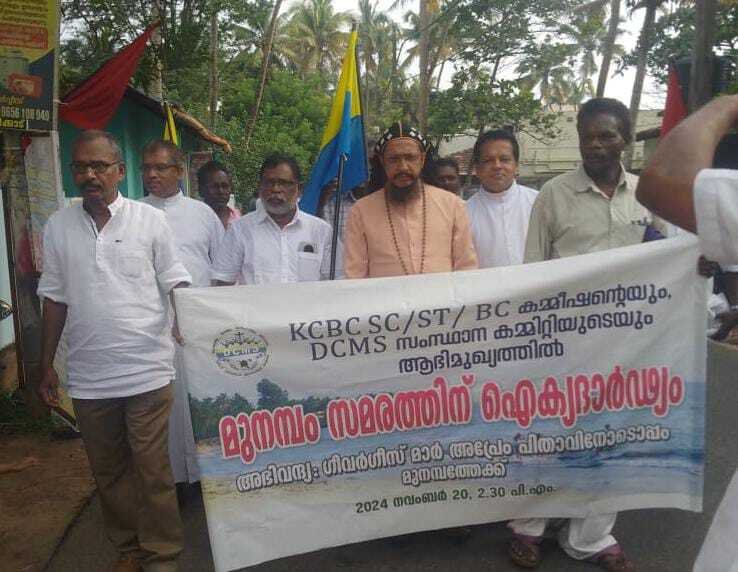 മുനമ്പം ഐക്യദാർഡ്യ മാർച്ചും സമര പന്തൽ സന്ദർശനവും DCMS സംസ്ഥാന കമ്മറ്റിയുടെ ആഭിമുഖ്യത്തിൽ നടത്തി. KCBC, SC, ST കമ്മീഷൻ ചെയർമാൻ ഗീവർഗീസ് മാർ അപ്രേം തിരുമേനി ഉൽഘാടനം ചെയ്തു. സംസ്ഥാന പ്രസിഡന്റ് ശ്രീ ജയിംസ് ഇലവുങ്കൽ അദ്ധ്യക്ഷത വഹിച്ചു. സംസ്ഥാന ഡയറക്ടർ ഫാ.ജോസുകുട്ടി ഇടത്തിൽ, ഫാ.ജോസ് വടക്കേക്കുറ്റ്, ശ്രീ യു.വി മാത്യു, മുതലായവർ ഐക്യദാർഢ്യം രേഖപ്പെടുത്തി.