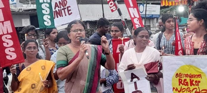 കൽക്കത്ത ആർ ജി കാർ മെഡിക്കൽ കോളേജിൽ പി ജി ഡോക്ടർ പീഡനത്തിനു ഇരയായി കൊല്ലപ്പെട്ട സംഭവത്തിൽ പ്രതിഷേധിച്ച് AIMSS AIDYO, AIDSO എന്നിവയുടെ നേതൃത്വത്തിൽ കോട്ടയത്ത് നടന്ന ജനകീയ മെഴുതിരി തെളിയ്ക്കൽ സമരം ഉത്ഘാടനം ചെയ്യുകയായിരുന്നു മിനി കെ ഫിലിപ്പ്. ആശ രാജ് അധ്യക്ഷയായിരുന്നു. AIDYO ജില്ലാ സെക്രട്ടറി അരവിന്ദ് വേണു ഗോപാൽ, ജില്ലാ പ്രസിഡന്റ് രജിത ജയറാം, AI മസ് ജില്ലാ സെക്രട്ടറി മായമോൾ KP, AIDSO ജില്ലാ പ്രസിഡന്റ് റലേഷ് ചന്ദ്രൻ, AIDSO സ്റ്റേറ്റ് കമ്മിറ്റി അംഗം മീനാക്ഷി രവീന്ദ്രൻ തുടങ്ങിയവർ പ്രസംഗിച്ചു. സൂര്യസെൻ, ഹെലൻ റോസാ, ജോജോ ജോസഫ് എന്നിവരുടെ നേതൃത്വത്തിൽ പ്രതിഷേധ ഗാനാലാപനവും നടന്നു.