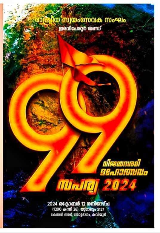 തിരുവല്ല: രാഷ്ട്രീയ സ്വയം സേവക സംഘം ഇരവിപേരൂർ ഖണ്ഡിന്റെ ആഭിമുഖ്യത്തിൽ 12ന് വിജയദശമി ആഘോഷം സപര്യ 2024 നടക്കും. വൈകിട്ട് 4.30 ന് തോട്ടബ്ഭാഗം കേസരി നഗറിൽ നടക്കുന്ന സപര്യ 2024 ൽ ആർ.എസ്.എസ്. അഖില ഭാരതീയ സഹ ശാരീരിക് ശിക്ഷൺ പ്രമുഖ് ഒ.കെ. മോഹൻ ബൗധിക് നടത്തും. പ്രൊഫ. രഞ്ജു ജോസഫ് അദ്ധ്യക്ഷത വഹിക്കും. ഇതിന്റെ ഭാഗമായി ശാരീരിക് പ്രദർശനം, ഗണഗീതം, അമൃത വചനം എന്നിവയും നടക്കും. തോട്ടബ്ഭാഗം കേസരി നഗറിലേക്ക് കണിയാമ്പറ ജംഗ്ഷനിൽ നിന്ന് 2.30ന് പഥസഞ്ചലനം ആരംഭിക്കും.