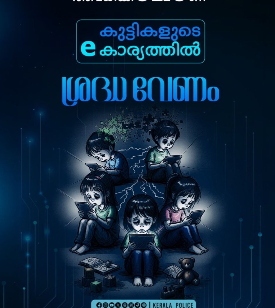സംശയാസ്പദമായ ലിങ്കുകള്, ഗെയിമുകള്, ആപ്പുകള് എന്നിവ തുറക്കരുതെന്ന് കുട്ടികളെ പറഞ്ഞ് മനസിലാക്കണമെന്നും കേരള പൊലീസിന്റെ കുറിപ്പില് പറയുന്നു.