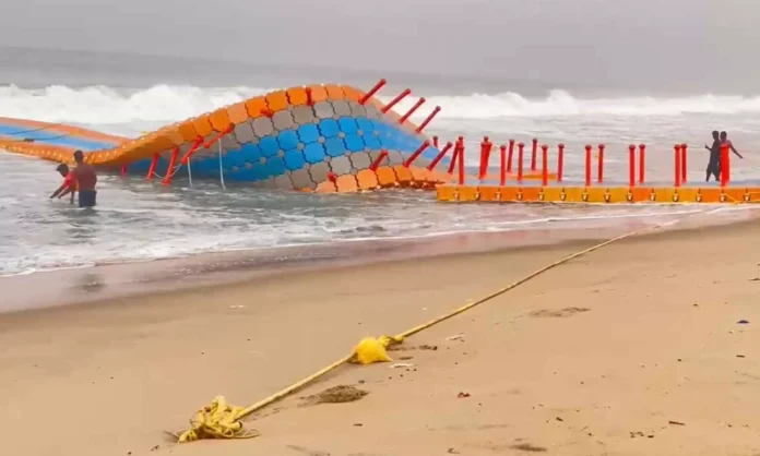 കുട്ടികളുള്പ്പെടെ 15 ഓളം പേര്ക്ക് പരിക്കേറ്റ അപകടത്തെ തുടര്ന്ന്, കഴിഞ്ഞ വര്ഷം മാര്ച്ചിലാണ് വര്ക്കലയിലെ വിവാദ ഫ്ലോട്ടിംഗ് പാലം അടച്ചത്. വെള്ളിയാഴ്ചയുണ്ടായ ശക്തമായ തിരമാലകളില് പാലം വീണ്ടും തകര്ന്നു. വിദഗ്ധ സംഘത്തിന്റെ സുരക്ഷാ പരിശോധനയ്ക്കായി വെള്ളിയാഴ്ച പുലര്ച്ചെ ശരിയാക്കിയ പാലമാണ്, ശക്തമായ തിരമാലയില് തകര്ന്നത്.