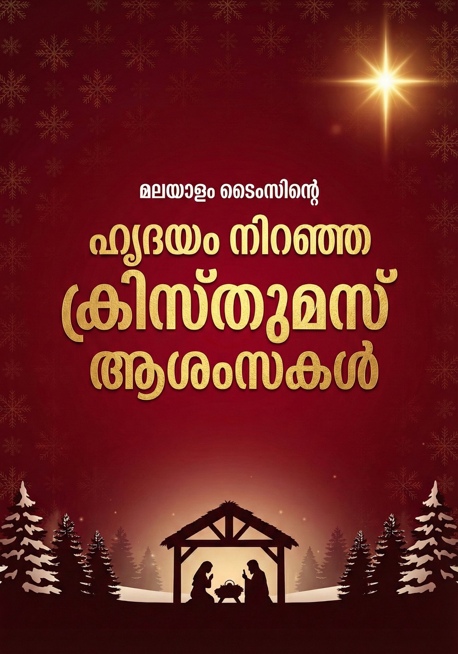 മലയാളം ടൈംസിന്റെ എല്ലാ വായനക്കാർക്കും അഭ്യുദയാകാംഷികൾക്കും ഹൃദയം നിറഞ്ഞ ക്രിസ്തുമസ് ആശംസകൾ